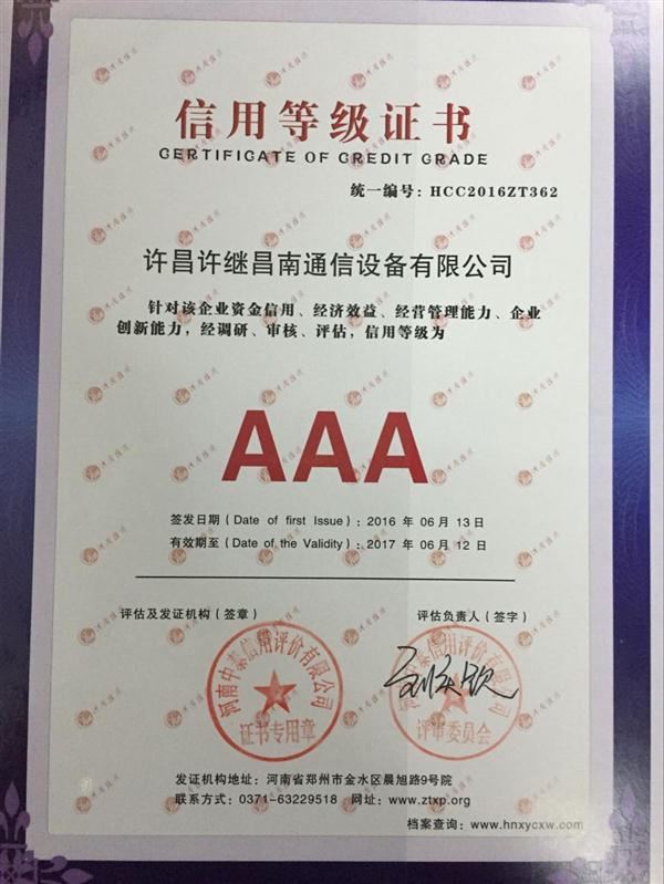 企業(yè)信用評價(jià)AAA級信用企業(yè)