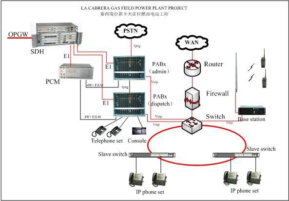 委內(nèi)瑞拉新卡夫雷拉燃氣電廠(2*191MW)項目,由中國水電建設(shè)集團國際工程有限公司承建,許繼昌南通信公司負責(zé)全廠通信系統(tǒng)的設(shè)計、供貨、現(xiàn)場安裝調(diào)試工作。通信系統(tǒng)設(shè)備包括:光纖通信系統(tǒng)、調(diào)度程控交換系統(tǒng)、行政程控交換系統(tǒng)、通信電源系統(tǒng)、配線系統(tǒng)、LAN/WAN系統(tǒng)。