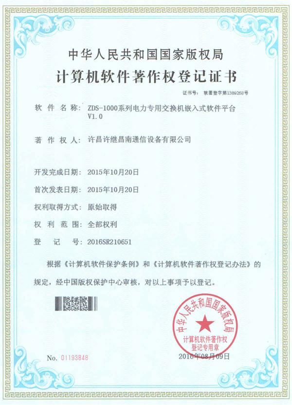 ZDS-1000系列電力專用交換機嵌入式軟件平臺
