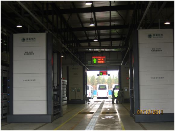 南京南河風光帶內的南河充換電站于2013年正式完成建設,全車電池更換時間約6至8分鐘,每天換電服務能力為72車次,可滿足30輛純電動公交車換電需求。
